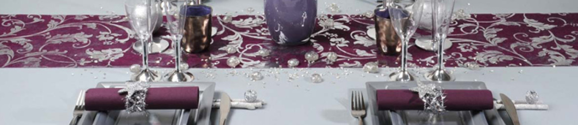 Sélectionnez votre nappe, vos serviettes, votre chemin de table, les marques-places, les paillettes, les pierres, les bougies... et faites de la décoration de votre table de Noël un décor de rêve !